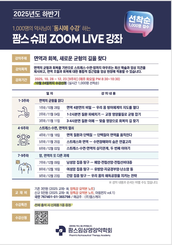 À̹ø °­Á´ ÃÑ 9ÁÖÂ÷·Î ±¸¼ºµÆÀ¸¸ç ¡ã¸é¿ªÀÇ ±ÕÇü ¡ã½ºÆ®·¹½º¡¤¼ö¸é¡¤¸é¿ª ¡ã¾Ï°ú ¸é¿ªÀÇ °úÁ¦ 3°¡Áö ÃàÀ» Áß½ÉÀ¸·Î ¾à±¹¿¡¼­ ȯÀÚ »ó´ã°ú Á¦Ç° Ãßõ¿¡ Ȱ¿ëÇÒ ¼ö ÀÖ´Â ÃֽŠÇмú ±Ù°Å¿Í ½Ç¹« Á᫐ ÀλçÀÌÆ®°¡ Á¦°øµÉ ¿¹Á¤ÀÌ´Ù.