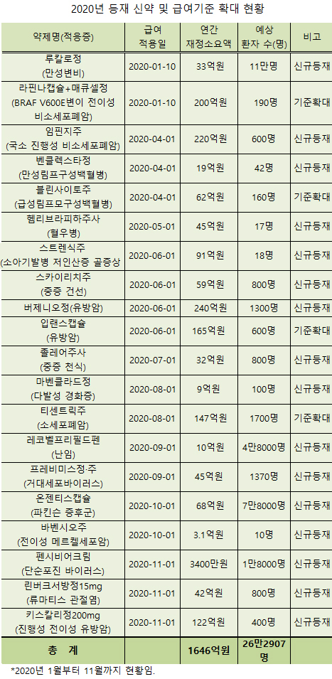 From January this year until recently, new drugs that were newly listed on the drug benefit list and drugs with enhanced coverage among the new drugs already registered were expanded, resulting in a total of 20 drugs, and it is more than doubled when all items by content are summed. Penciclovir Cream, Rinvoq 15mg, and Kisqali 200mg were newly listed as of this month