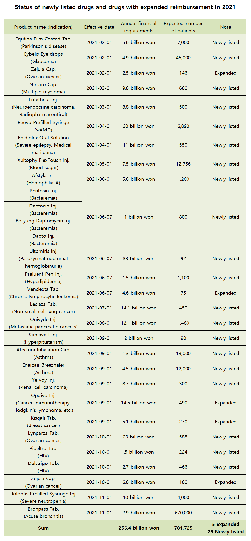 An total of 25 items listed and 5 items extended reimbursement¡¦ improved accessibility for 781,725 people