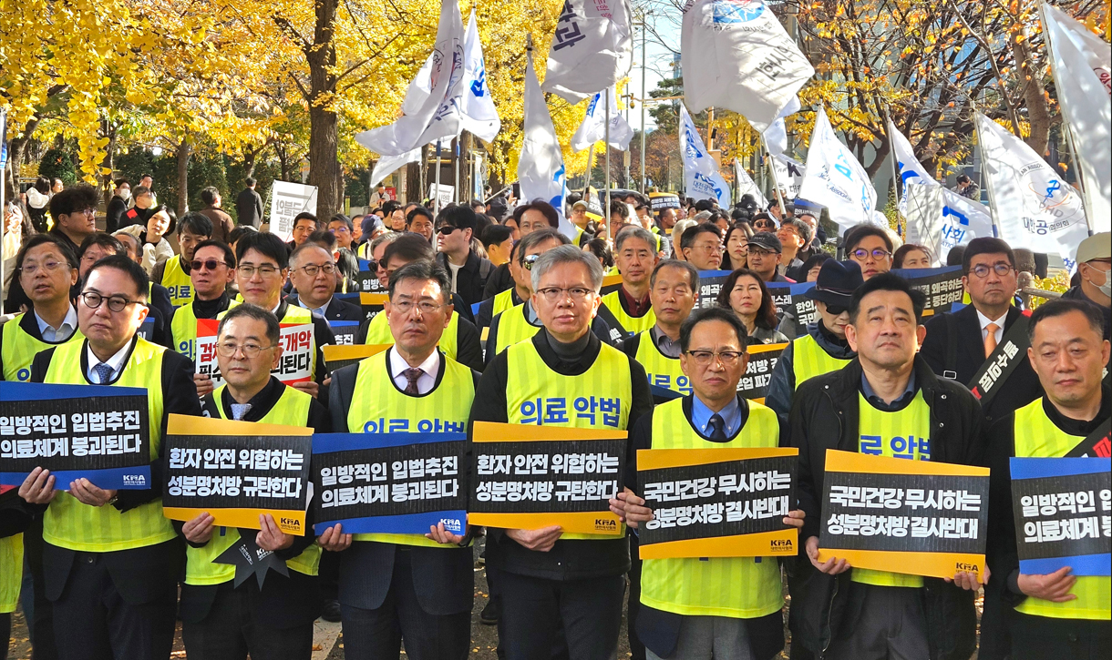 Representatives of doctors nationwide gathered in front of the National Assembly on the 16th to protest the government¡¯s push to mandate international nonproprietary name (INN) prescriptions and allow Korean medicine practitioners¡¯ use of X-ray devices.